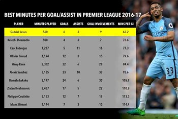 حقق المهاجم البرازيلي غابرييل خيسوس مع نادي مانشستر سيتي أسرع معدل زمني تهديفي في الدوري الإنكليزي الممتاز بتسجيله هدفاً كل 62 دقيقة بعدما لعب مع فريقه 560 دقيقة سجل خلالها 6 أهداف وصنع ثلاثة أهداف.