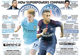 نشرت صحيفة "ذا صن " البريطانية تقريراً استعرضت من خلاله تفاصيل الأرقام المالية التي أنفقها كل من ناديي مانشستر سيتي الإنكليزي وباريس سان جيرمان الفرنسي، بعدما أصبحت ملكية الناديين عربية بشكل كامل.