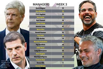 نظمت صحيفة "ذا صن" البريطانية استطلاعًا للرأي لجماهير أندية الدوري الإنكليزي الممتاز حول شعبية مدربيها ومدى رضاهم عن العمل الذي يقدمونه، والنتائج التي حققوها في أعقاب مرور ثلاث جولات.