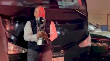 سائق تشيلي يصبح جزءاً من تاريخ المنتخب المغربي. أشبال الأطلس يكرمونه بصورة مع كأس العالم تقديراً لجهوده الصامتة. لحظة إنسانية تختصر روح الفريق والعرفان المغربي