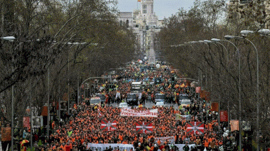 تظاهر حوالي 150 ألف مزارع ومربي ماشية في مدريد الأحد لمطالبة حكومة بيدرو سانشيز الاشتراكية باتخاذ إجراءات فورية لوقف ارتفاع الأسعار، ولا سيما أسعار المحروقات، ومعالجة تراجع مداخيل المزارع.
