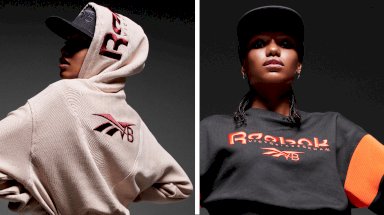 تمزج المجموعة الأخيرة من فيكتوريا بيكهام وريبوك بين عالمي الرياضة والموضة حيث تكشف عن صورة ظلية أكثر جاذبية مع بدلات داخلية تظهر الجلد وأقمشة لامعة.