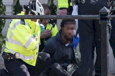 أعلنت الشرطة البريطانية أنها أوقفت مساء الجمعة الرجل المسلح بسكين، بعدما أصاب اثنين من عناصرها بجروح طفيفة خارج قصر باكينغهام، بموجب قانون مكافحة الإرهاب.