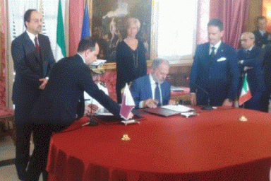 قال وزير الخارجية القطري الشيخ محمد بن عبد الرحمن آل ثاني، اليوم الأربعاء إن بلاده وقعت مع إيطاليا صفقة لشراء سبع قطع بحرية بقيمة خمسة مليارات يورو (5.91 مليارات دولار أميركي).