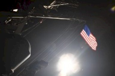 أثارت الضربة الأميركية لقاعدة عسكرية جوية سورية ردود فعل مؤيدة على نطاق واسع، في حين عارضت روسيا وايران، وقال بوتين إن الضربة الأميركية هي "عدوان على دولة ذات سيادة".