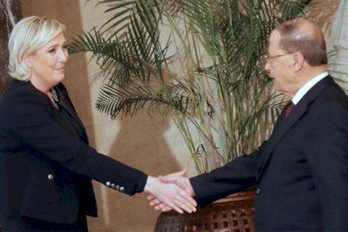 التقت مرشحة اليمين المتطرف للرئاسة الفرنسية مارين لوبن الاثنين الرئيس اللبناني ميشال عون، ليكون اول رئيس دولة اجنبية يستقبلها في اطار سعيها الى كسب مزيد من الصدقية الدولية.