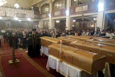 يتقدم الرئيس المصري عبد الفتاح السيسي جنازة عسكرية لضحايا تفجير الكنيسة البطرسية في القاهرة الذي وقع أمس، بينما لاتزال التحقيقات جارية، وسيكون حضور صلاة الجنازة محصورًا بأسر القتلى ومن يتم توزيع تصاريح دخول لهم فقط.