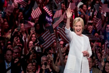 أعلن الحزب الديموقراطي في فيلاديلفيا أن هيلاري كلينتون البالغة من العمر 68 عامًا هي مرشحته الرسمية للانتخابات الرئاسية التي ستجري في نوفمبر المقبل. ورحبت المرشحة ببدء مرحلة تاريخية للنساء.