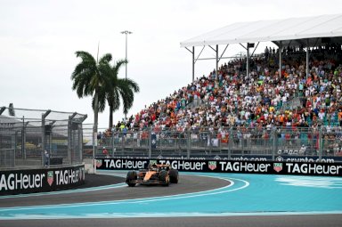 فاز البريطاني لاندو نوريس سائق ماكلارين بسباق السرعة (سبرينت) في جائزة ميامي الكبرى، المرحلة السادسة من بطولة العالم لسيارات فورمولا واحد السبت، متفوقا على زميله ومتصدر ترتيب السا