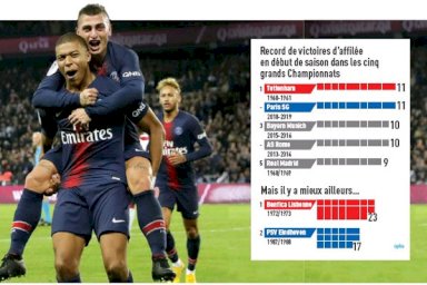 نجحت أندية باريس سان جرمان الفرنسي وإيندهوفن الهولندي وباوك اثينا اليوناني في تصدر جدول ترتيب الدوري في بلادها من خلال تحقيقها العلامة الكاملة دون ان تسجل أي تعثر في مشوارها المحلي.