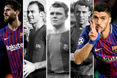 انضم المهاجم الأوروغوياني لويس سواريز إلى قائمة الخمسة الأوائل في ترتيب الهدافين الافضل في تاريخ نادي برشلونة بفضل تألقه اللافت امام ريال مدريد في موقعة "كلاسيكو الأرض" في بطولة الدوري الإسباني.